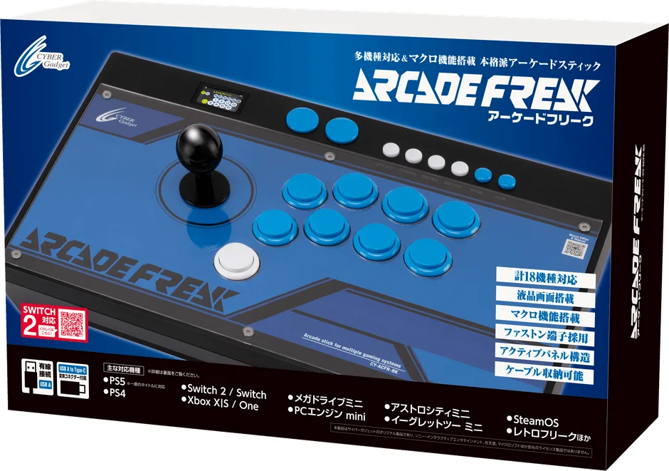 The ‘Arcade Freak’ is compatible with 18 platforms, including modern systems like PC and PS5, and popular retro consoles such as Mega Drive Mini, PC Engine mini, and Retro Freak. It also supports the upcoming Nintendo Switch 2, allowing players to enjoy a wide array of titles with one controller.