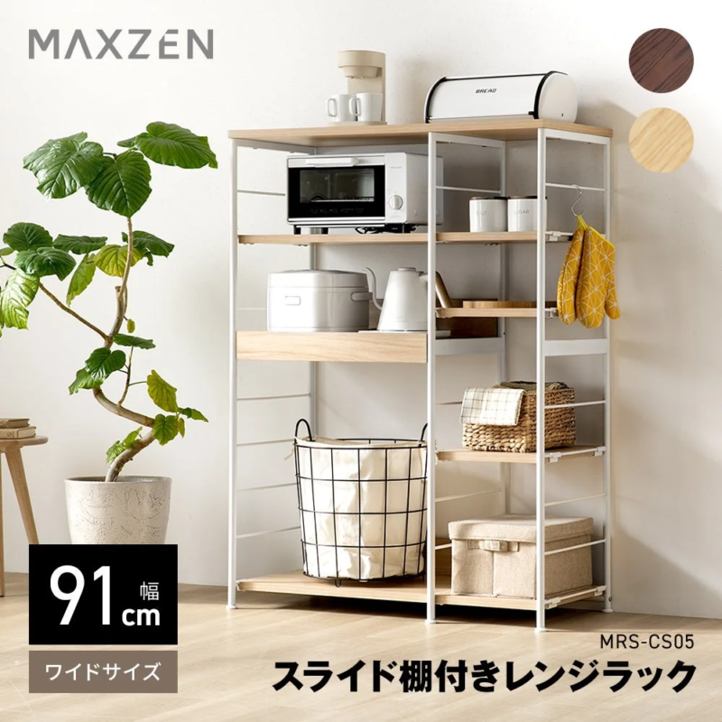 The MRS-CS05 features a refined and simple design that complements various interior styles. Available in two color variations, natural and brown, its aesthetic appeal allows for versatile placement not only in the kitchen but also in living areas as a display rack or bookshelf.