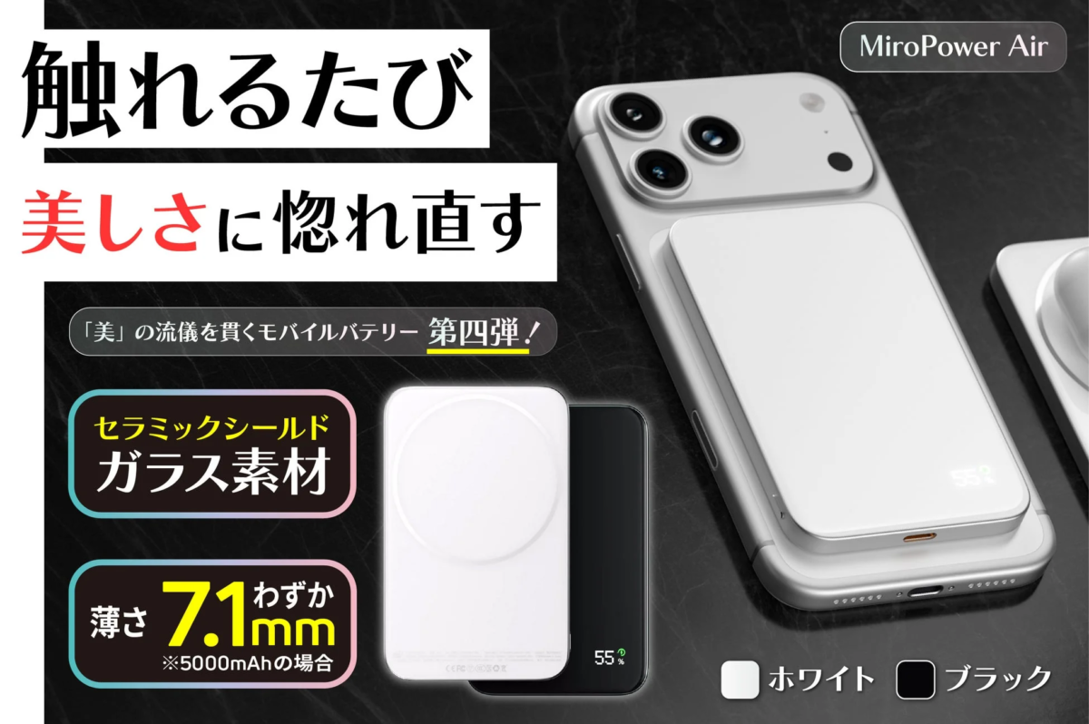 MiroPower Air features ultra-ceramic shield glass, boasting a surface hardness more than three times that of typical tempered glass. This allows it to maintain a minimalist, transparent appearance while easily withstanding scratches in a bag and daily impacts. Inside, a 0.2mm reinforced steel layer is adhered, pushing the limits of thinness and impact resistance.
