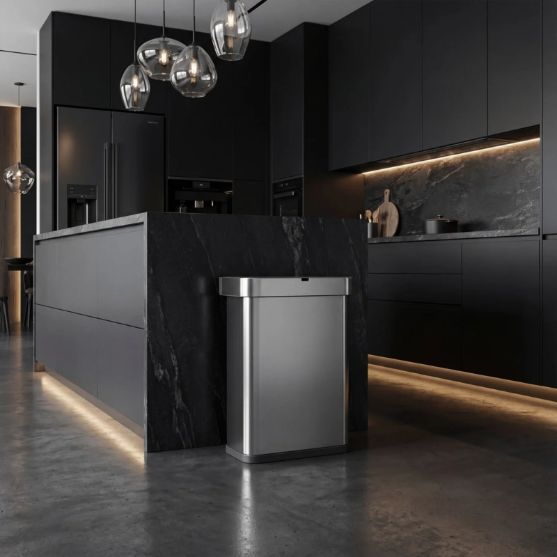 The Rectangular Sensor Can offers intuitive operation through both voice commands and motion sensing. Users can simply say “open can” to open the lid, “stay open” to keep it open, and “close can” to close it. The lid also closes automatically after 10 minutes. Motion sensing provides an alternative control method, with built-in safeguards to prevent accidental activation based on the surrounding environment. This dual-system approach is engineered to seamlessly integrate with actual movements in a kitchen setting.