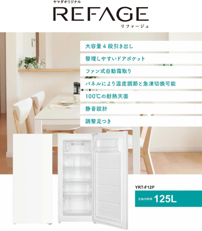 Digital Catalog: https://cache.ymall.jp/image/ymdweb/pc/common/pdf/y-select/catalog/refrigerator/260313_refage_125L_YRT-F12P.pdf